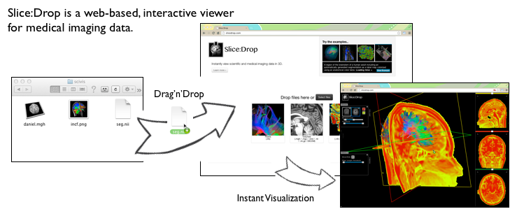 Slice:Drop uses WebGL and HTML5 Canvas to render the data in 2D and 3D. We use our own open-source toolkit to perform the rendering, called XTK.