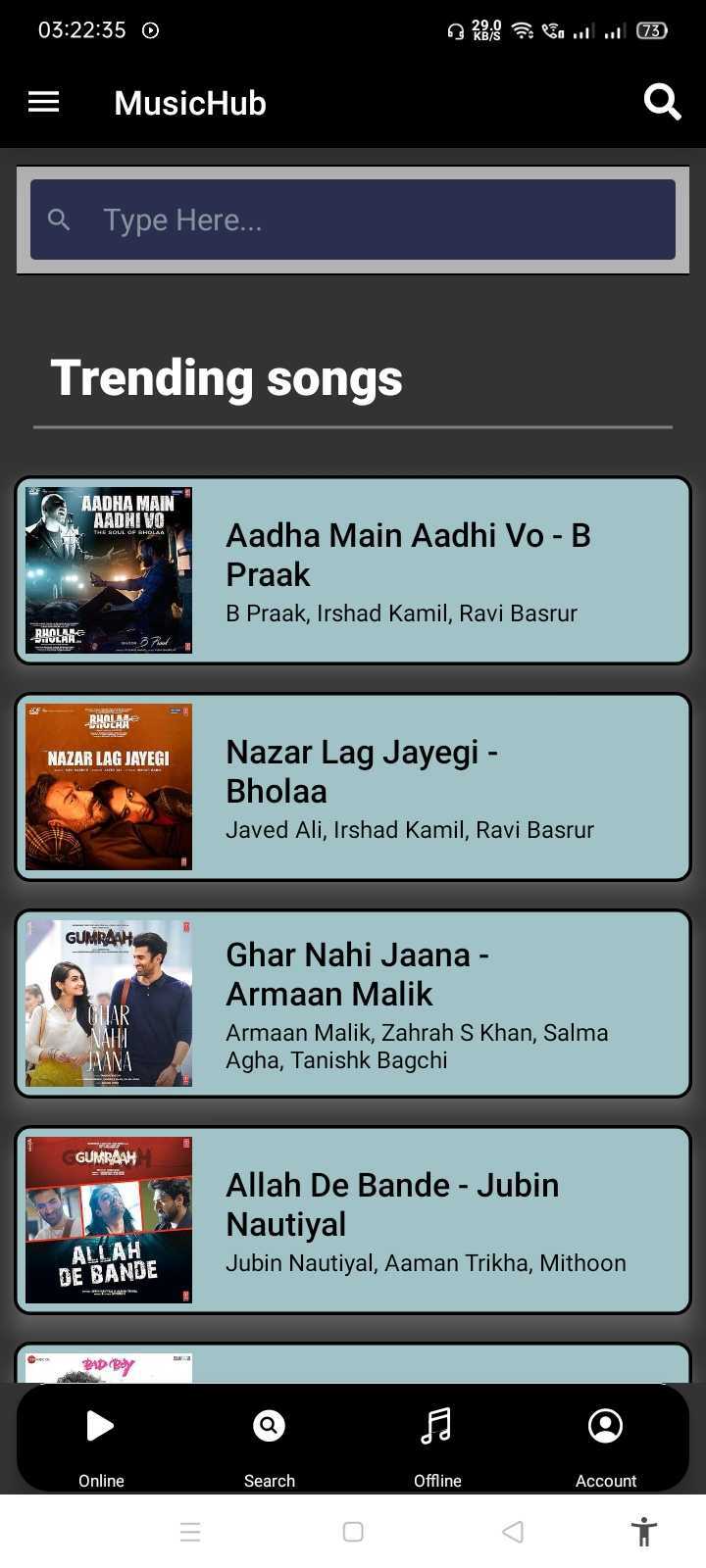 MusciHub is a music player app built using React Native. It allows users to listen to songs online and play local audio files on their device. The app also includes authentication features such as email-password authentication, OTP verification, and Google authentication. Additionally, users can search for songs and change the theme of the app to personalize their experience.