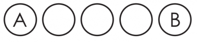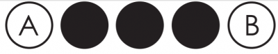 Aqui está um exemplo: O disco branco A já foi posicionado no tabuleiro. A colocação do disco branco B flanqueia a linha de três discos pretos.