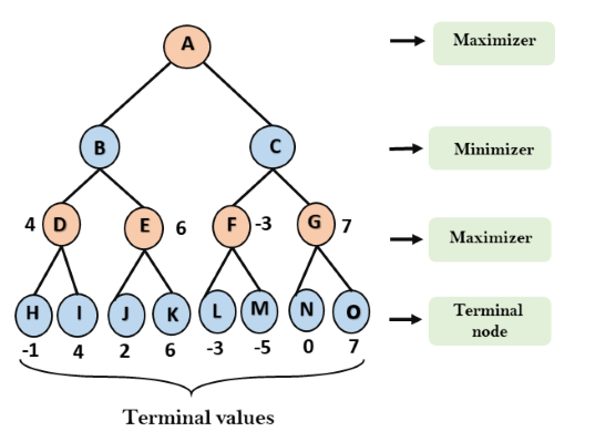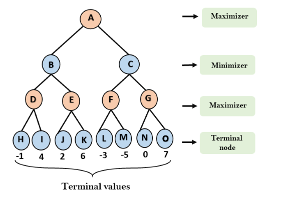 Ambos os jogadores do jogo são oponentes um do outro, onde MAX selecionará o valor maximizado e MIN selecionará o valor minimizado.