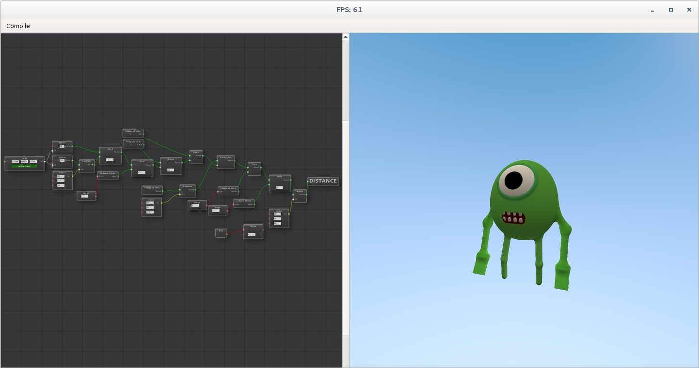 When approaching 3D modelling, it requires a large amount of expertise to develop complex scenes in quick succession. Powerful modelling tools are required for the user to carry out these demands and artists often look for different ways to achieve quicker and more accurate results. In this paper, we present a visual, node-based approach to 3D modelling using signed distance fields. The node-based approach is similar to those employed by Houdini and Grasshopper and allows for easy parameterisation of the scene. By using signed distance functions to represent the scene, complex objects can be modelled using a combination of set-theoretic operations and simple deformations. Using an already functional and tested scene builder method it grants us a secure building block to base our tool around. This allows the artist to have a more streamlined and user-friendly application which is essential when constructing 3D scenes. Furthermore, the user can provide multiple instructions without having to understand the mathematical operations needed to generate the scene, thus making the application accessible to a wide variety of artists. In our implementation, we create a bridge between the visual front end and the technical back end to represent the scene.